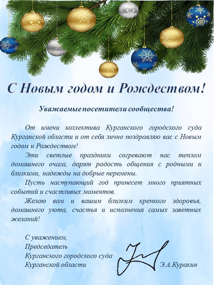 | Поздравление председателя суда С Новым годом | версия для печати |